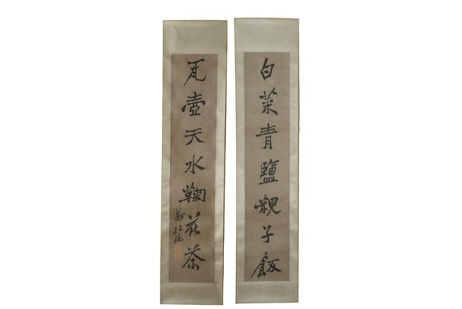 AN INK ON PAPER CALLIGRAPHY COUPLET    鄭板橋款 行書七言聯 紙本立軸