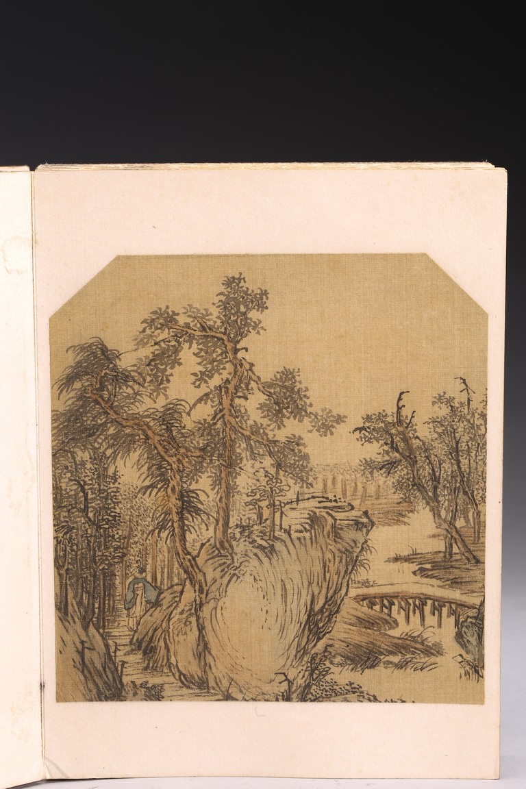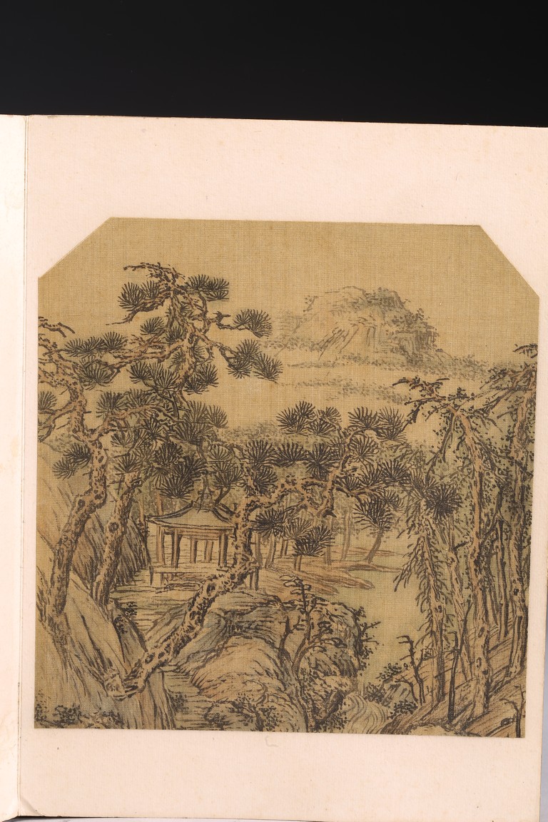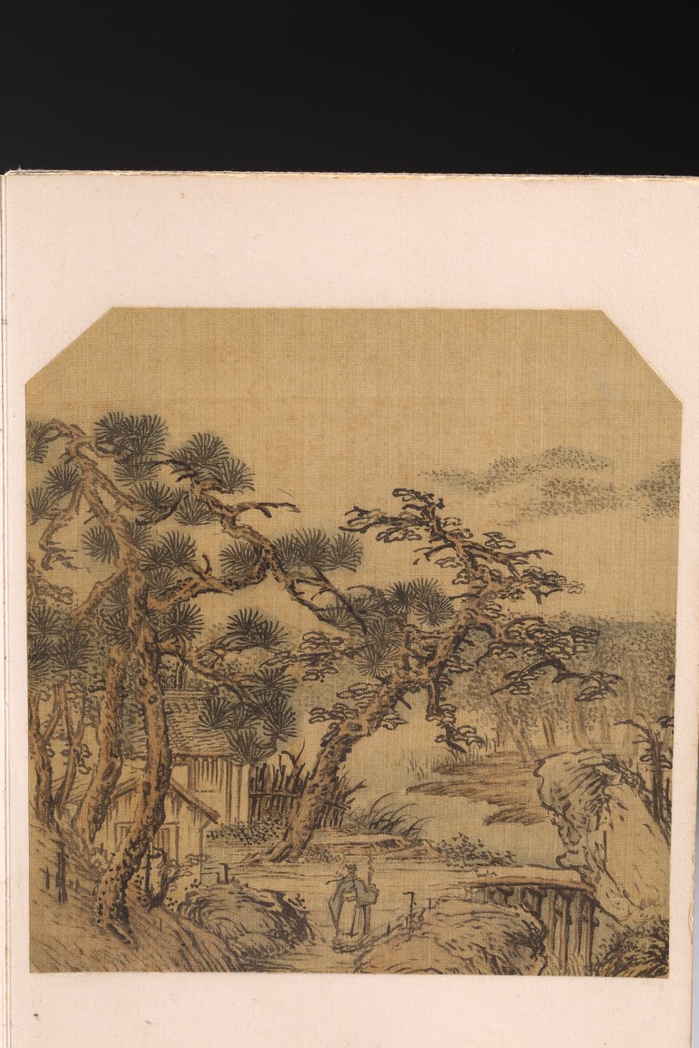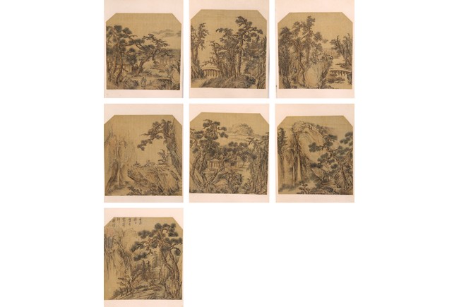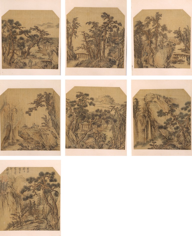 Color and ink on silk. Landscape. Seven leaves album. Inscribed, with one seal of the artist, attributed to Wang Hui.