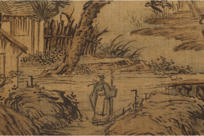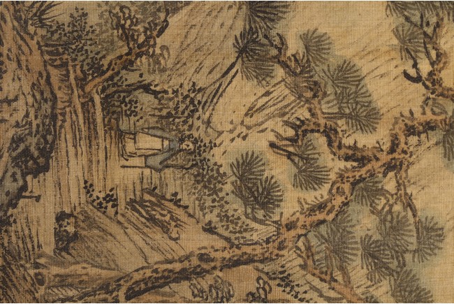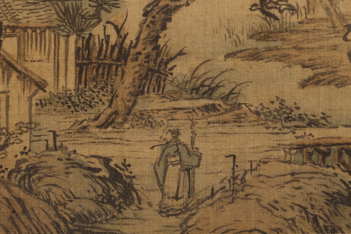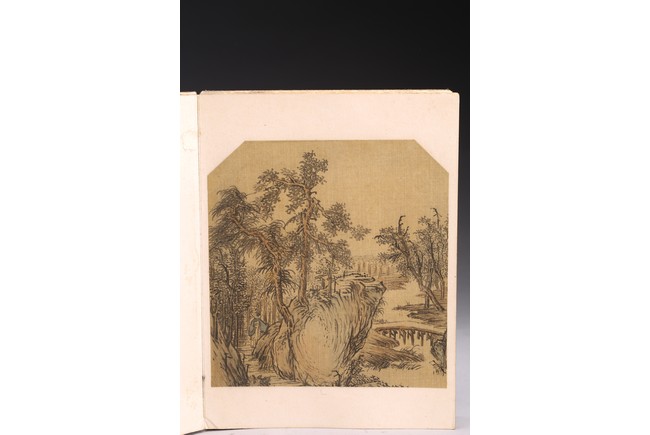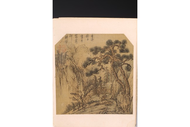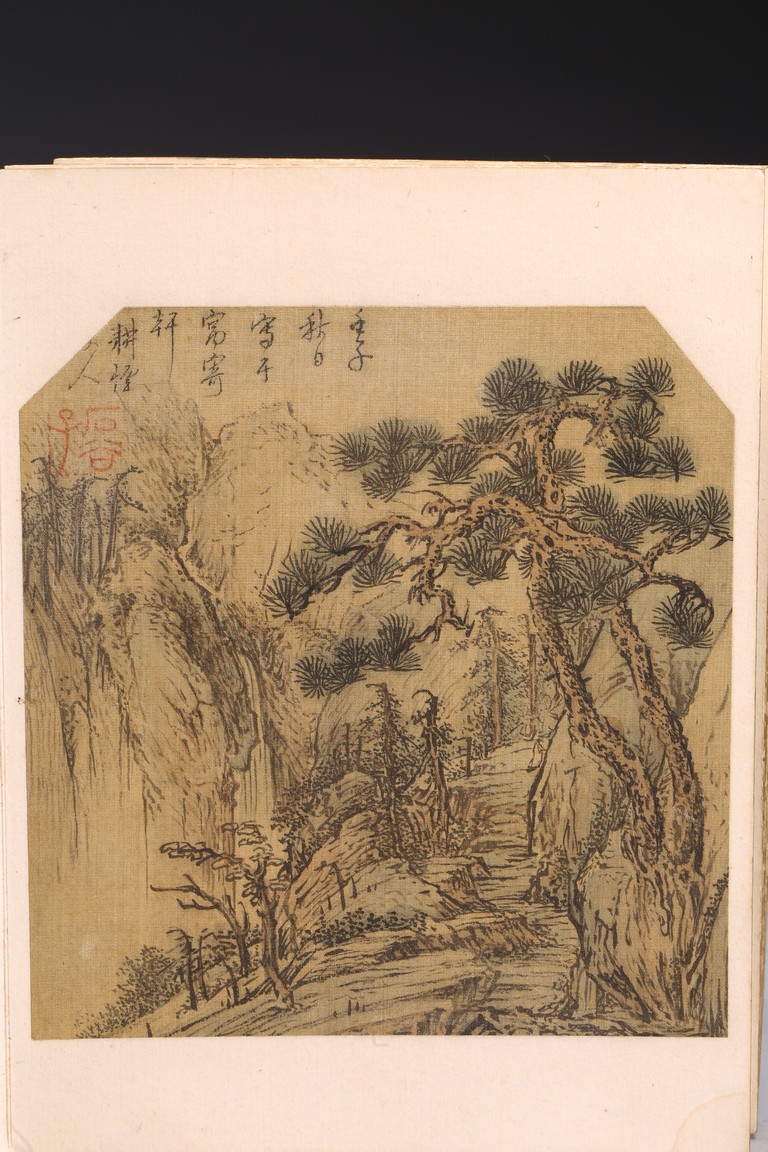 Color and ink on silk. Landscape. Seven leaves album. Inscribed, with one seal of the artist, attributed to Wang Hui.