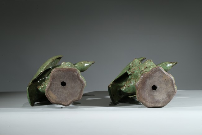 A PAIR OF CELADON GLAZED BIRD MODELS 清 青釉瓷雙鷹一對