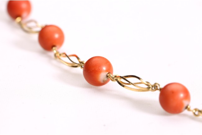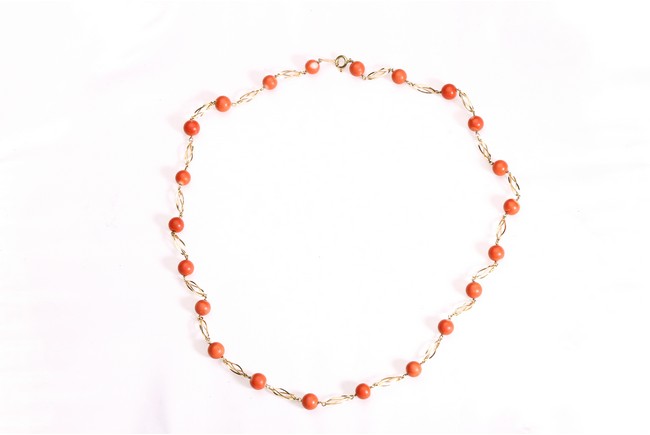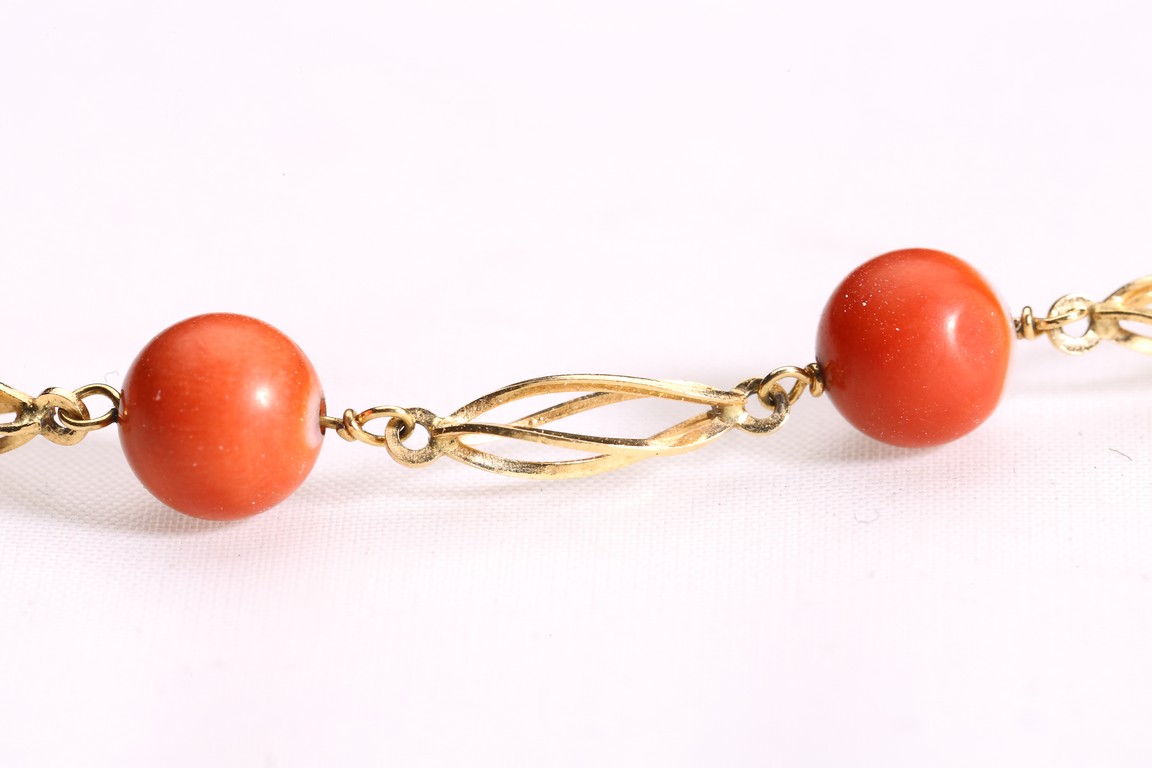 A GROUP OF THREE CORAL NECKLACE, BRACELET, AND RING 珊瑚18K金項鏈、手串、戒指一套三件
