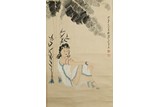 張大千 摩登仕女 鏡片 設色紙本