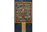 AN EMBROIDERED SILK 'FOUR-ARMED BODHISATTVA' THANGKA