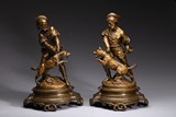 十九世紀 法國銅鑄人物'訓犬者'雕塑一對