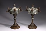 A PAIR OF FRENCH NEO-GOTHIC LIDDED URNS