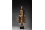 A GILT-LACQUERED STANDING WOOD FIGURE OF SAKYAMUNI