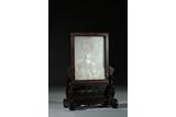 A WHITE JADE INSCRIBED 'BODHIDHAṚMA' TABLE SCREEN