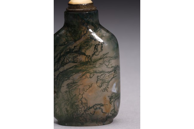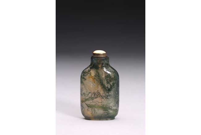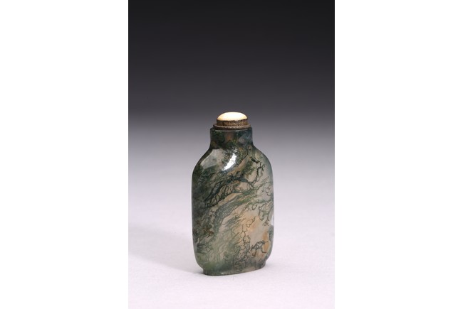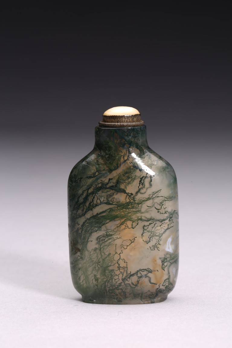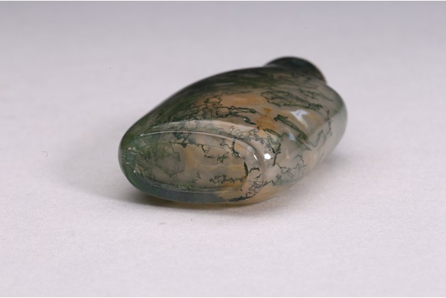 Of rounded rectangular form, the natural green inclusions in the stone suggestive of water weeds and aquatic plants, stopper. Mid-Qing Dynasty period.