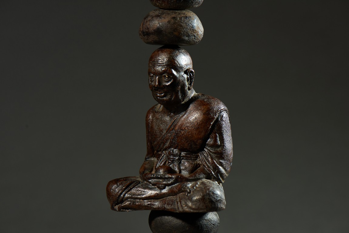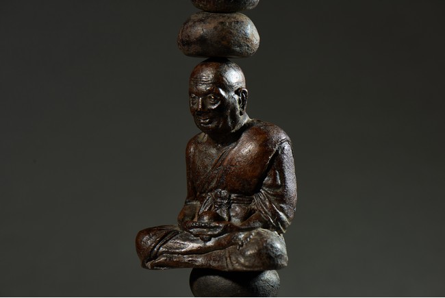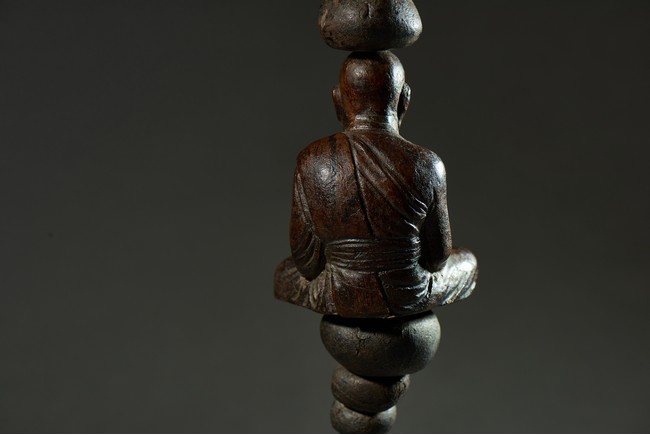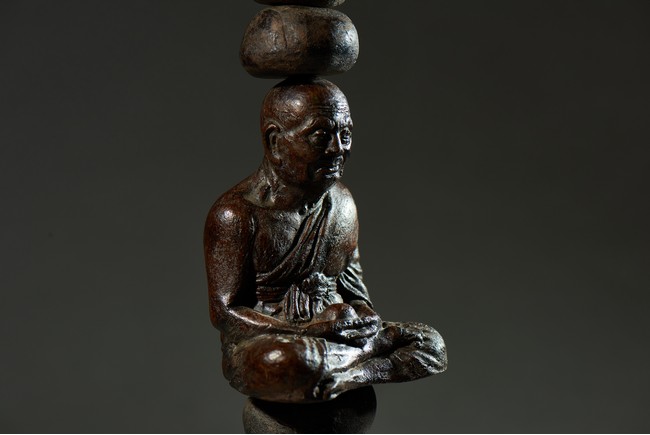 地宮是石雕刻和石結構相結合的典型建築,是陵寢建築的重要組成部分,多見於帝王陵寢和佛教高僧。此件器物為草製,極其特殊,羅漢面相豐滿、額頭高突,整體造型寫實傳神、氣韻生動,實為罕見難得。