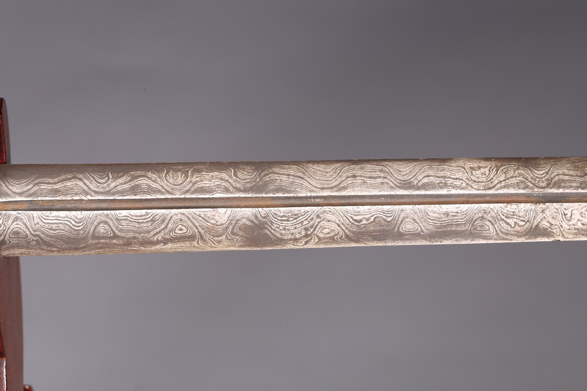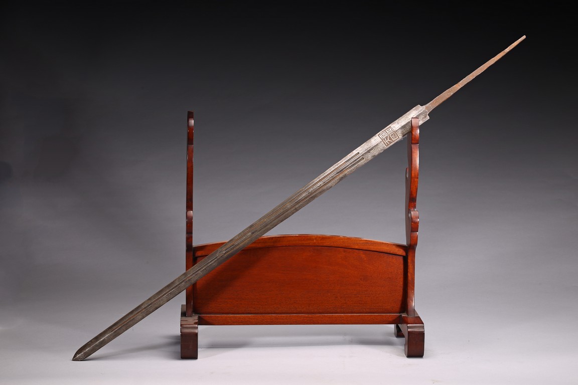 Provenance: Property from a Eastern Los Angeles private collection 太平天國是清朝道光晚年、咸豐至同治初年間建立的政權,創始人為洪秀全和馮雲山。洪秀全與少年時代的私塾同學馮雲山經過多年傳播拜上帝教,於道光三十年(1850年)末至咸豐元(1851年)初與楊秀清、蕭朝貴、曾天養、石達開等人在廣西金田村組織團營舉事,後建國號“太平天國”,並於咸豐三年(1853年)攻下金陵,號稱天京(今南京),定都於此。同治十一年四月六日(1872年5月12日),最後一支打著太平天國旗號作戰的太平軍部隊,翼王石達開餘部李文彩,在貴州敗亡。太平天國之亂是中國歷史上規模最大的戰爭,總計傷亡人數無定論,各種統計從7000萬人至1.6億人不等。此劍長三十九點五英呎,劍身寬一點五英呎,劍柄護套因時間較長遠緣故而已丟失。在眾多歷史拍賣會上所出現的刀劍數量極多,但落款為太平天國所使用的刀劍依然非常罕見。因此對於收藏家以及研究太平天國史的藏家、博物館而言,此劍具有珍貴的價值。 來源:東洛杉磯私人收藏