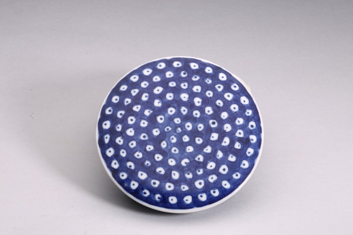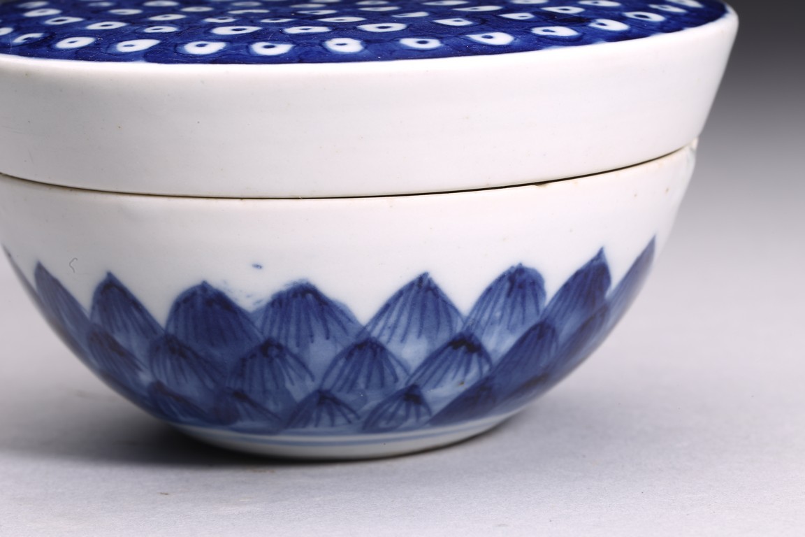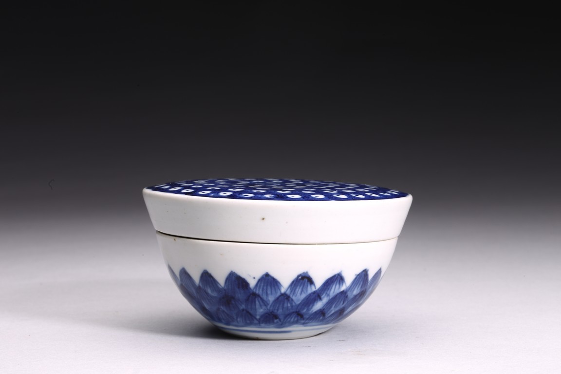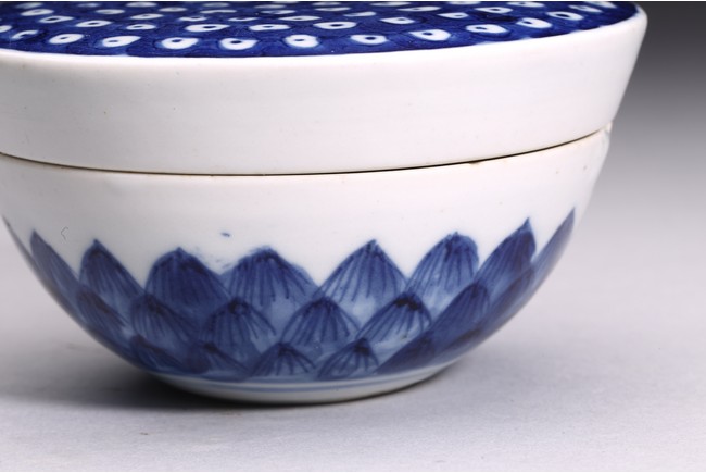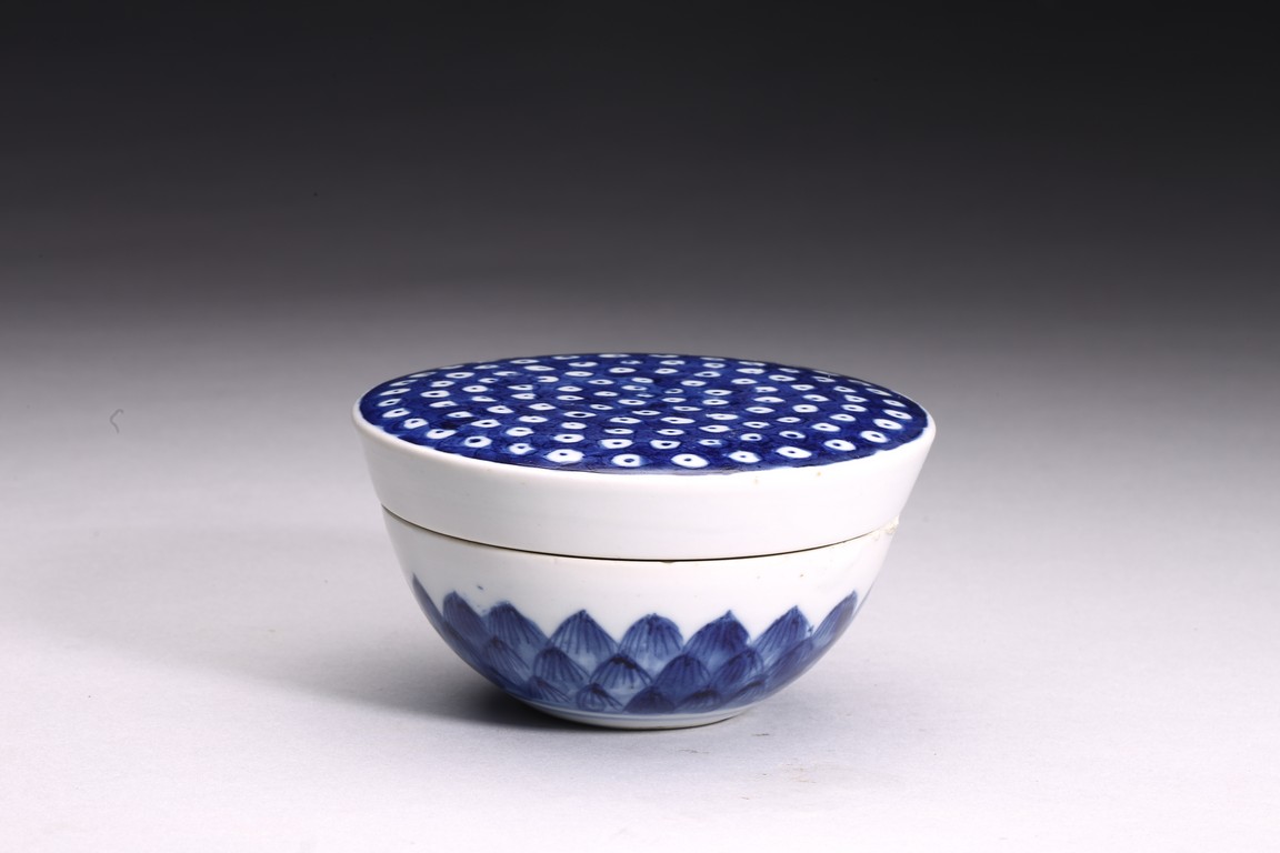 釉色青中泛灰,瑩潤光亮,局部用青花裝飾,作蓮蓬形,形態飽滿,表面蓮子俱現,造型小巧靈秀,為逼真、富有生活情趣和想像力的作品,為像生瓷中典範。具有“多子多孫,子孫滿堂”的美好寓意。