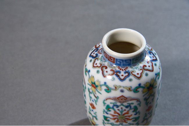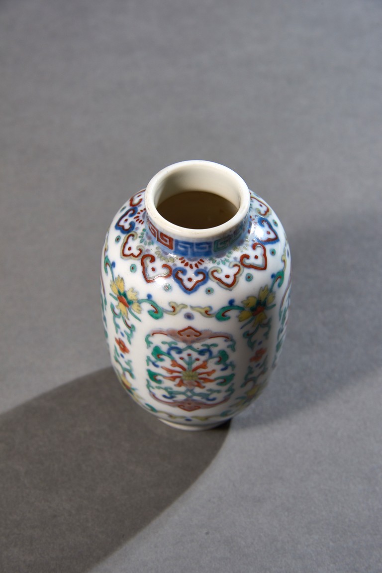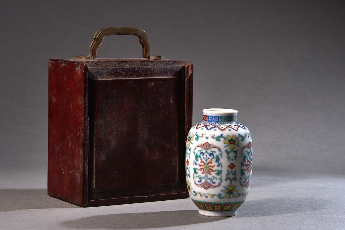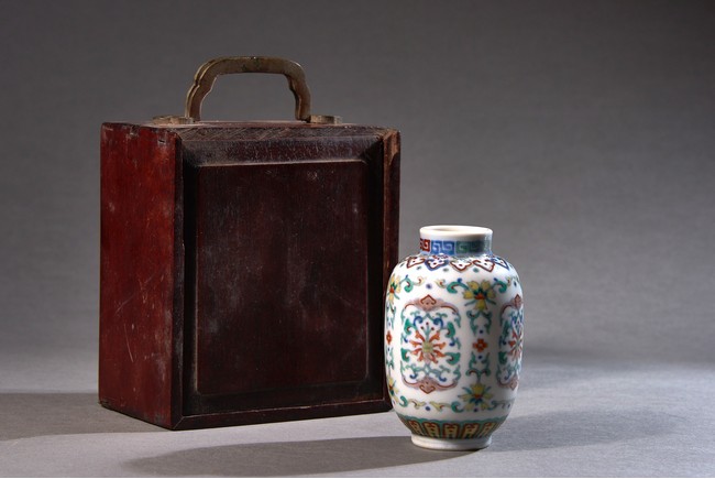 燈籠瓶,顧名思義,就是因為形似燈籠而得名。燈籠瓶是雍正時期官窯創燒的新創器形。本器圓口微撇,短頸,豐肩,長圓腹,造型古樸惇厚,優雅大方,線條流暢柔美,比例均衡考究。鬥彩花卉冠絶一時,由宮廷畫師為之畫稿,交與禦窯廠巧匠能手臨摹而成。彩瓷設色之難尤甚,濃艷過度流於媚俗,淡薄不足失卻本意,唯獨雍正一朝畫筆逸麗,構圖別具一格,將兩者巧妙融匯於一體,雅緻脫俗。 “大清雍正年制”款識。