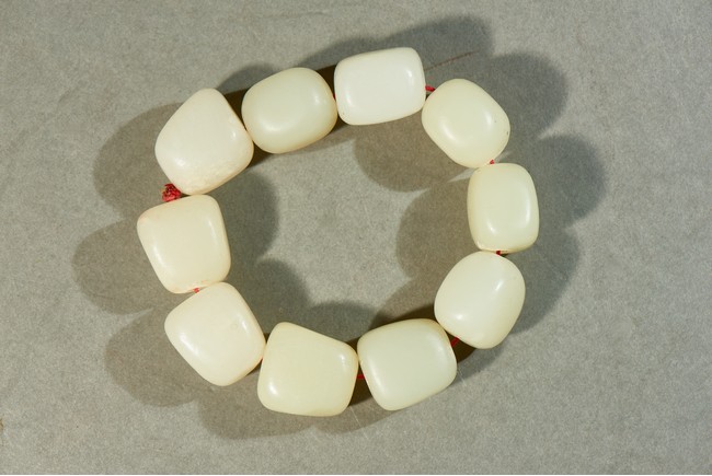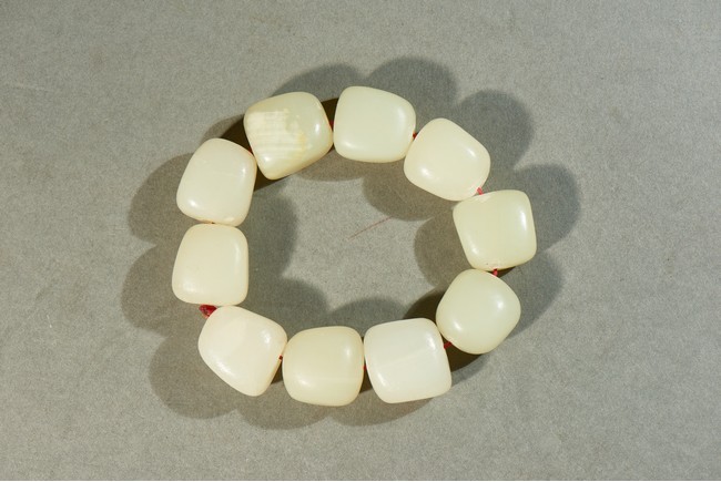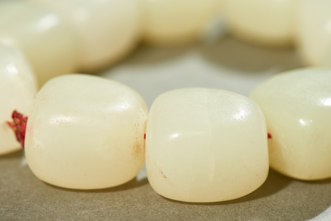 A WHITE JADE BEAD NECKLACE 和闐玉手串