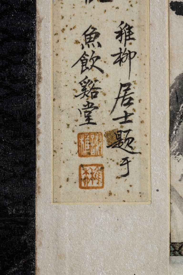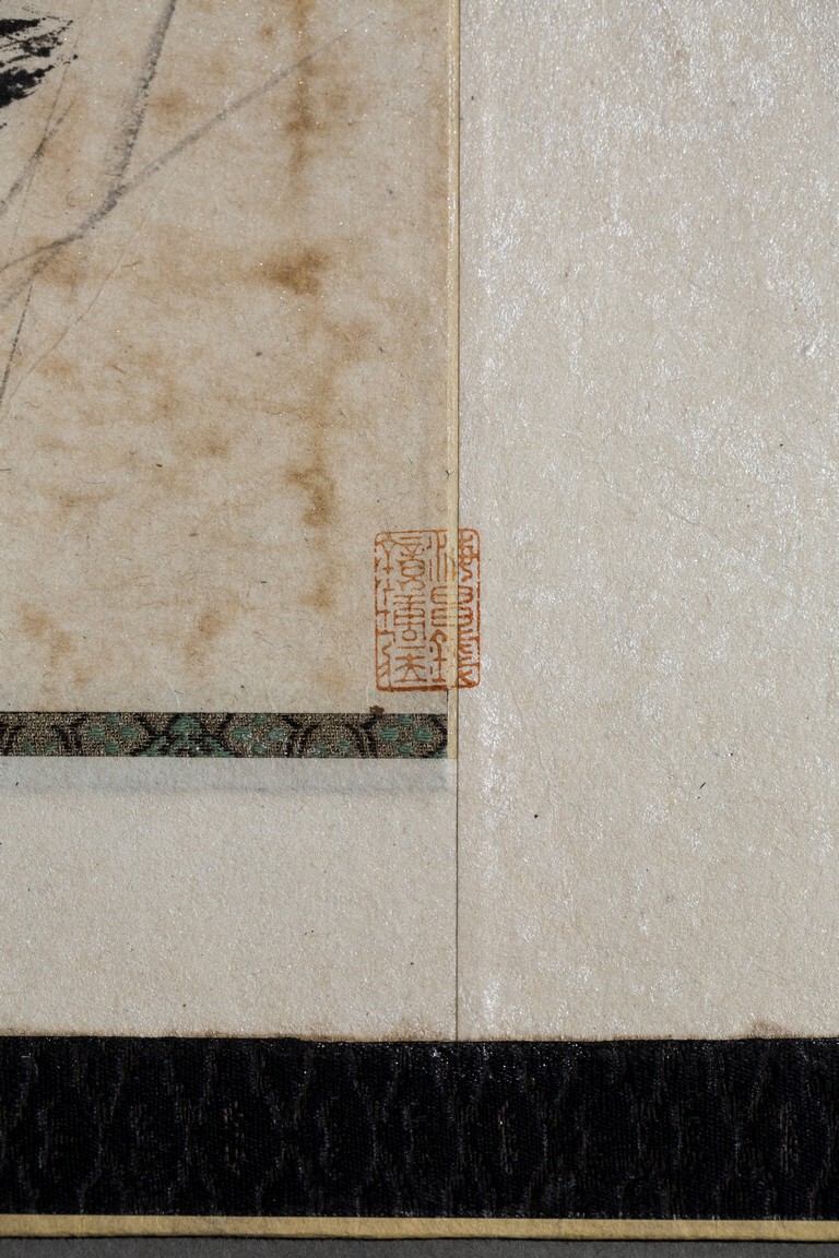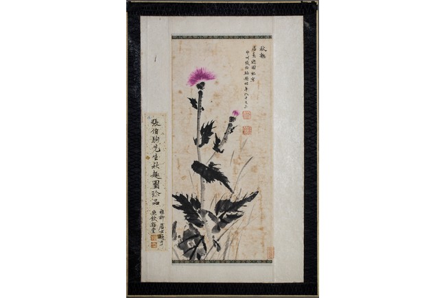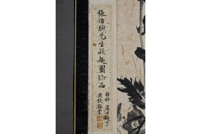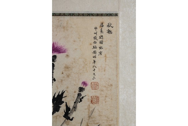 Ink and color on paper. Flowers. Mounted on paper. Inscribed and signed Zhang Boju with three seals of the artist.