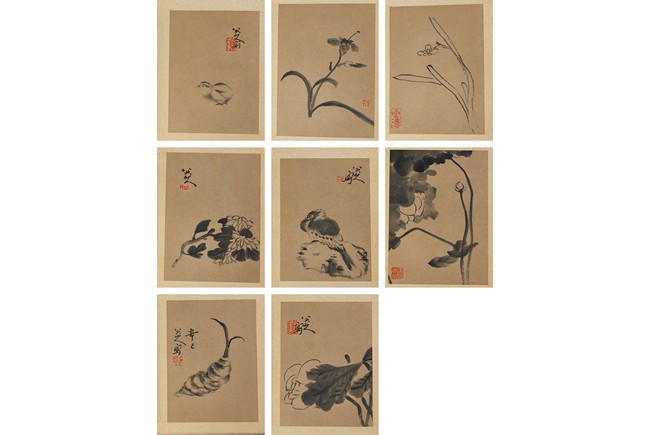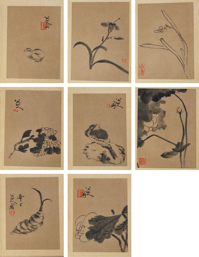 Ink on paper. Eight-leaf album painting. Each leaf inscribed and signed with seal of the artist. Attributed to Bada Shanren.