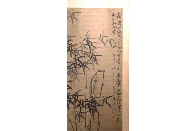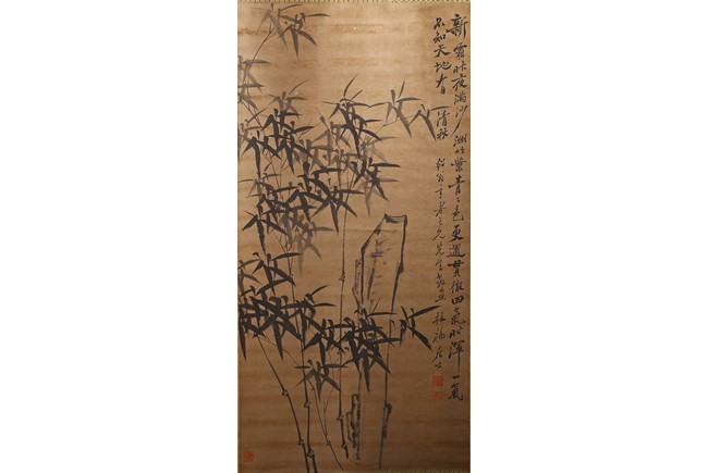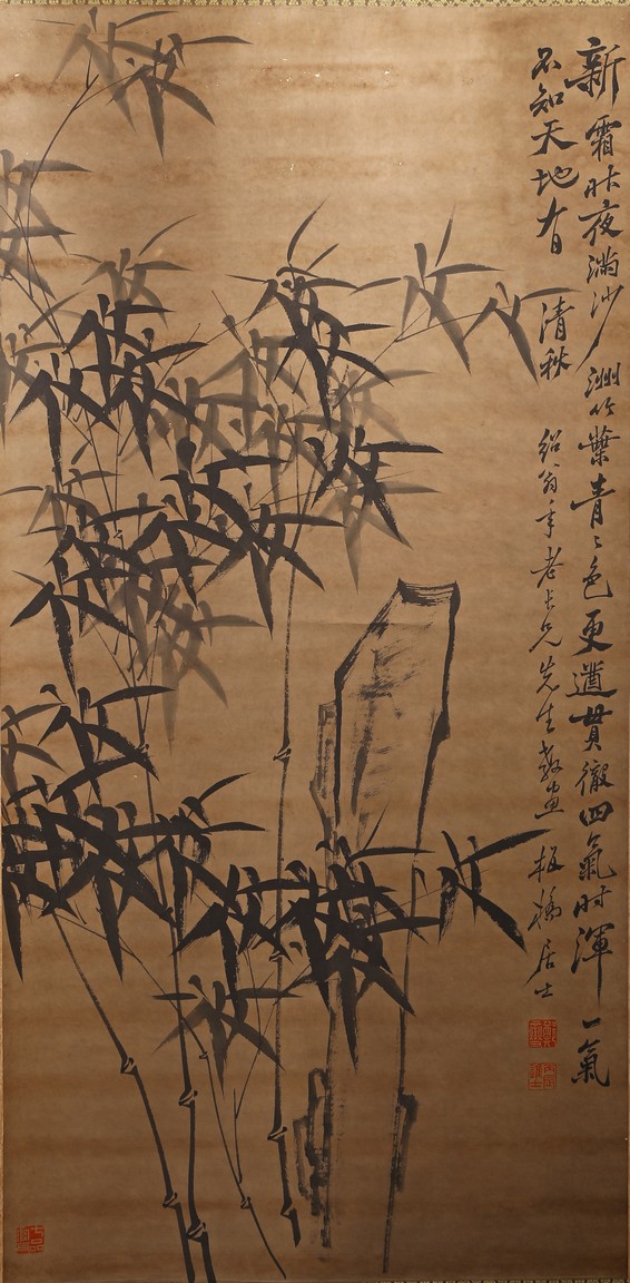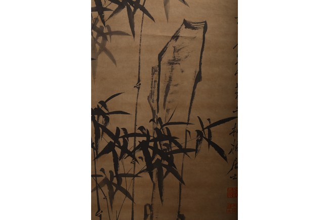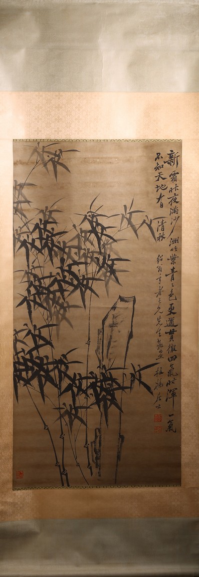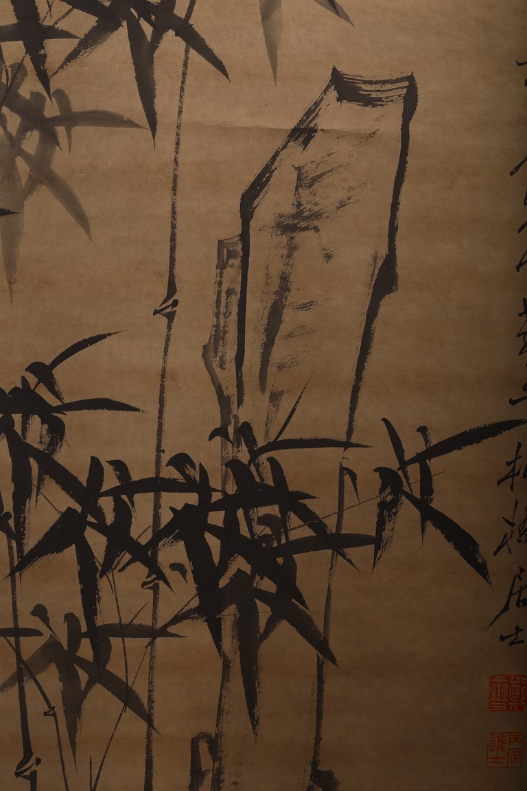 Ink on paper printing. Bamboo. Hanging scroll. Inscribed and signed by Zheng Banqiao and with three seals of the artist.