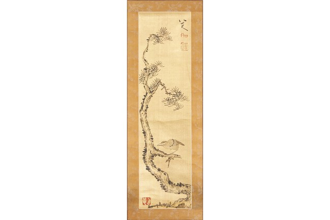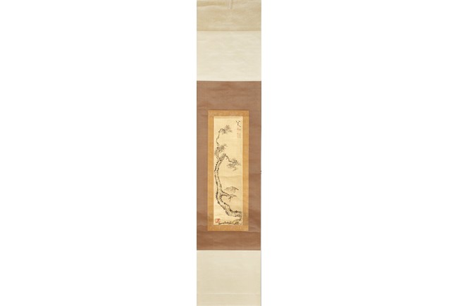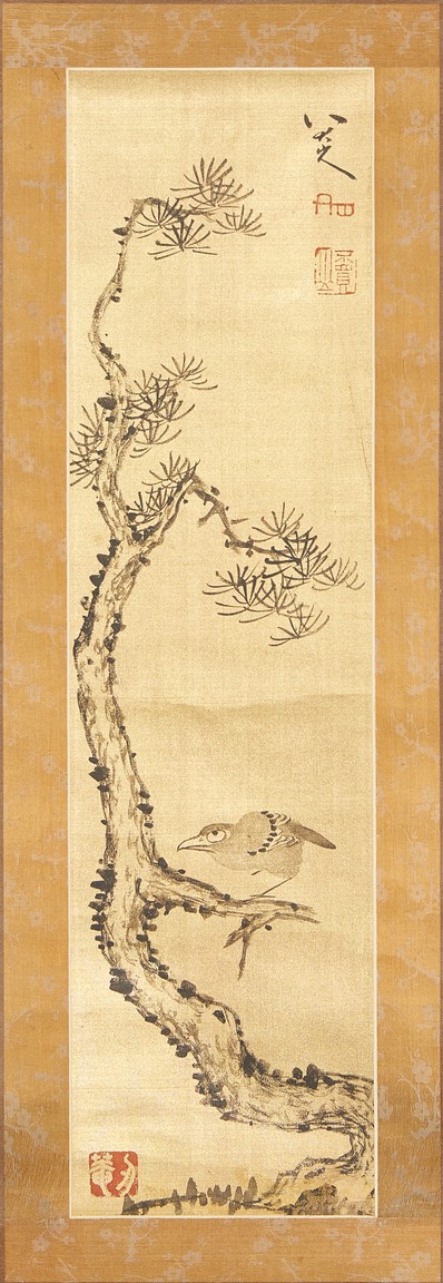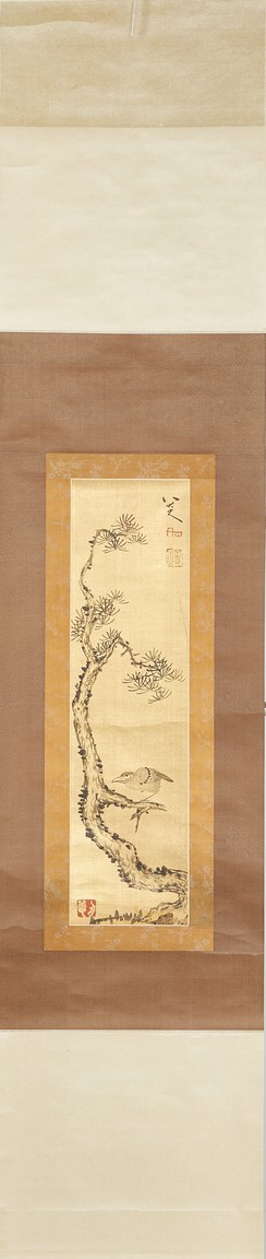 Ink and color on paper. Bird on tree branch. Hanging scroll. Inscribed and signed with three seal of the artist. Attributed to Bada Shanren.