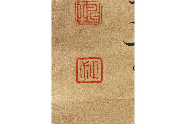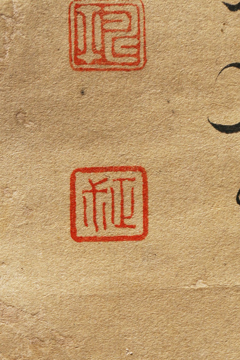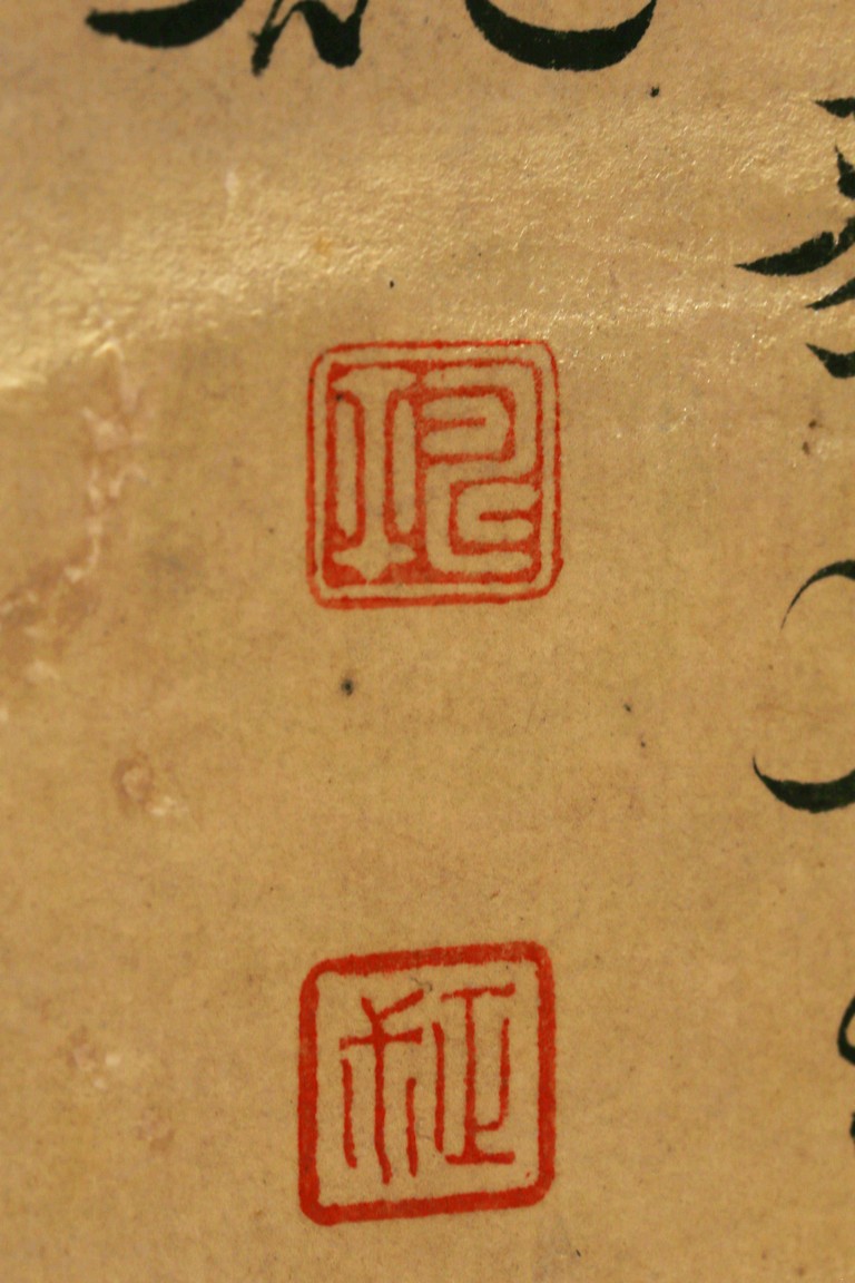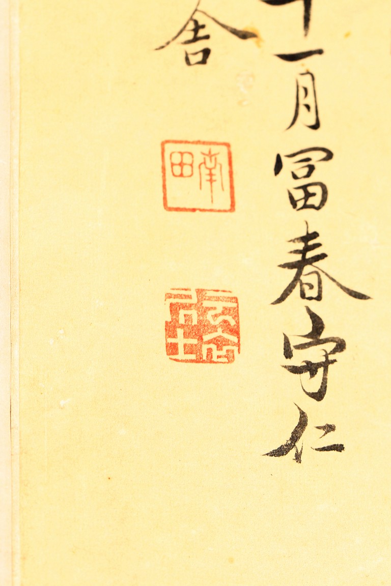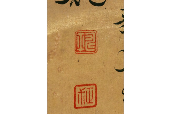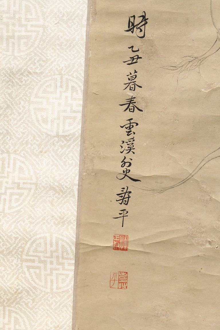 Ink and color on paper. Vegetables. Hanging Scroll. Inscribed and signed Shouping with seven seals of the artist.