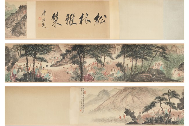 Ink and color on paper. Landscape. Handscroll. Inscribed by Tang Yun and signed Fu Baoshi with five seals of the artist.