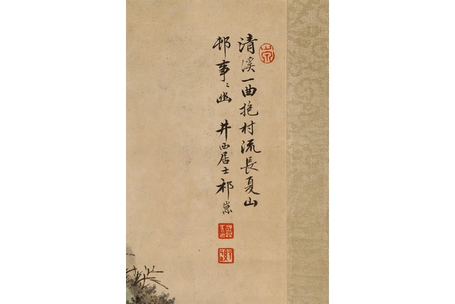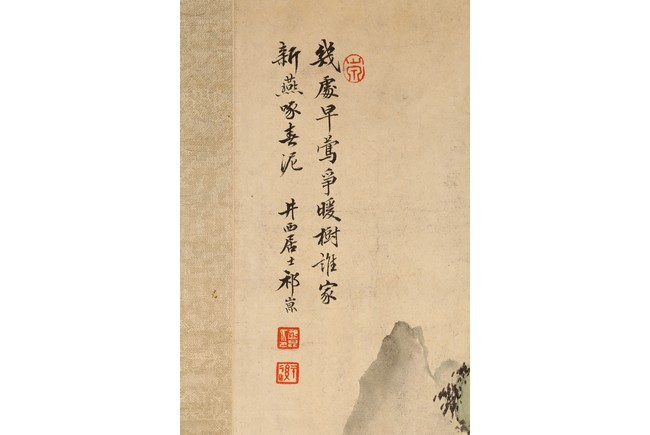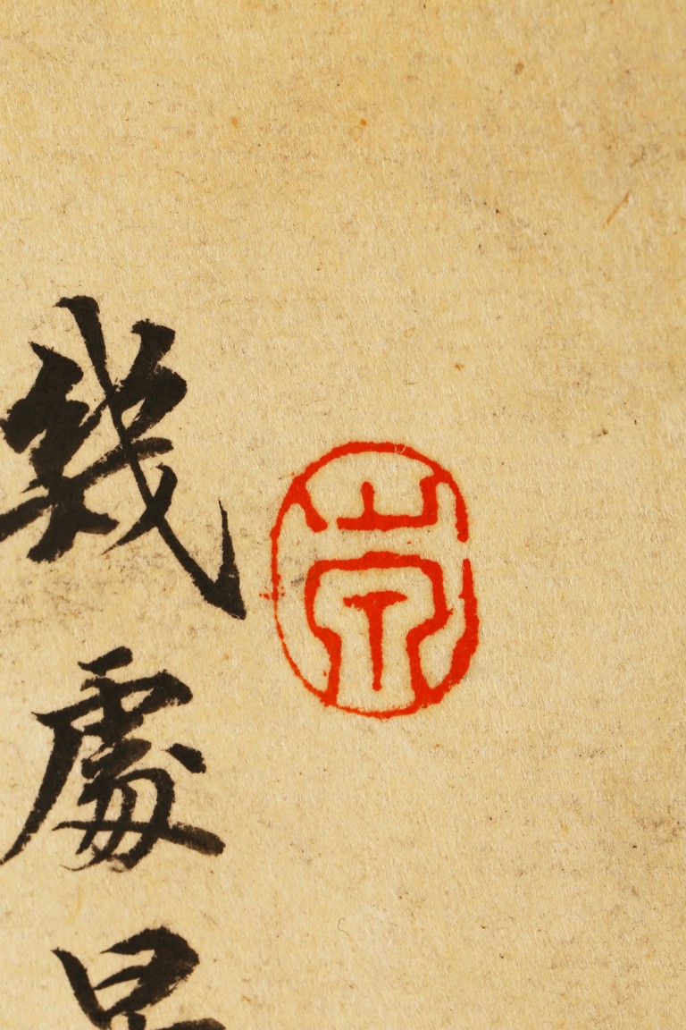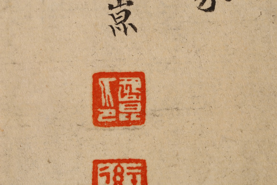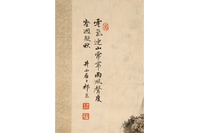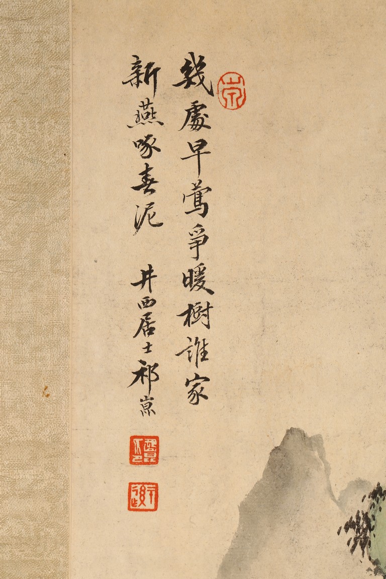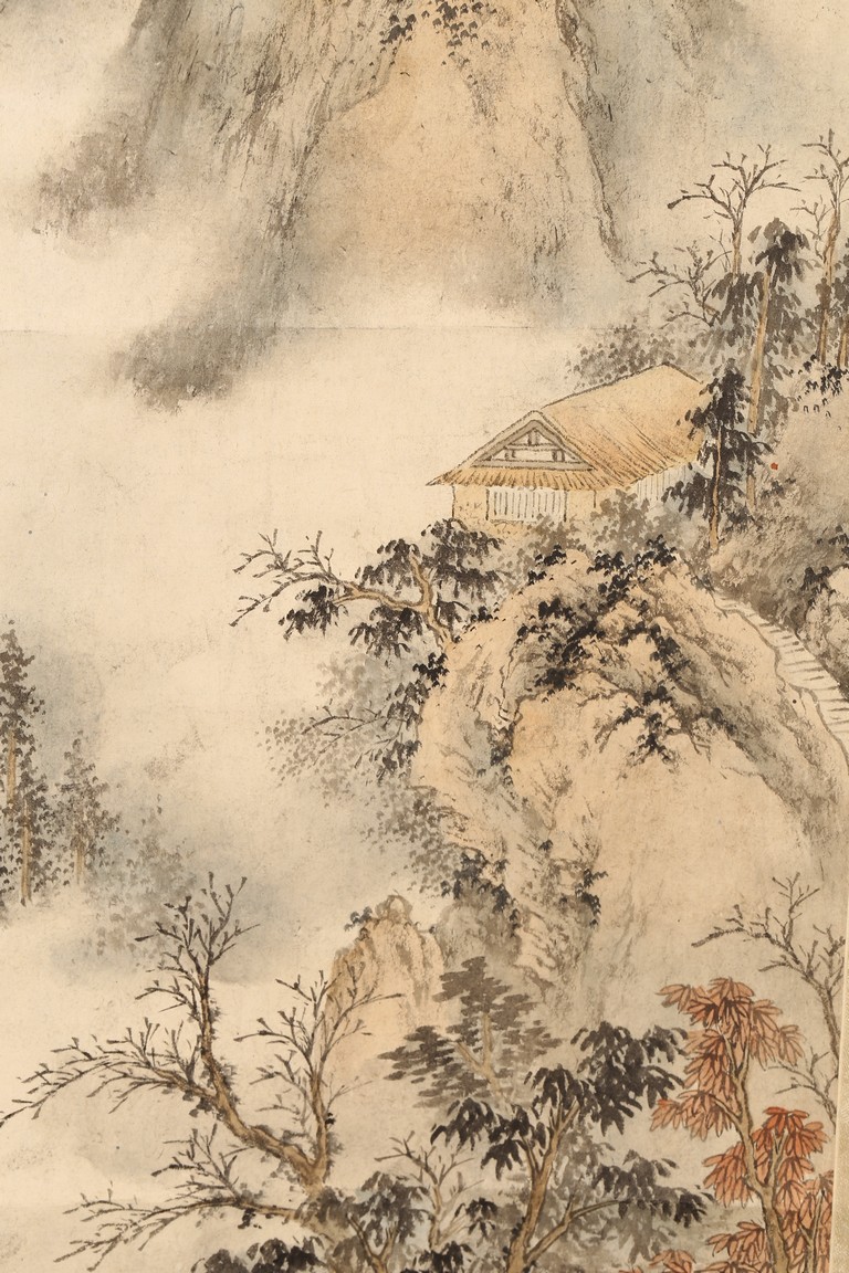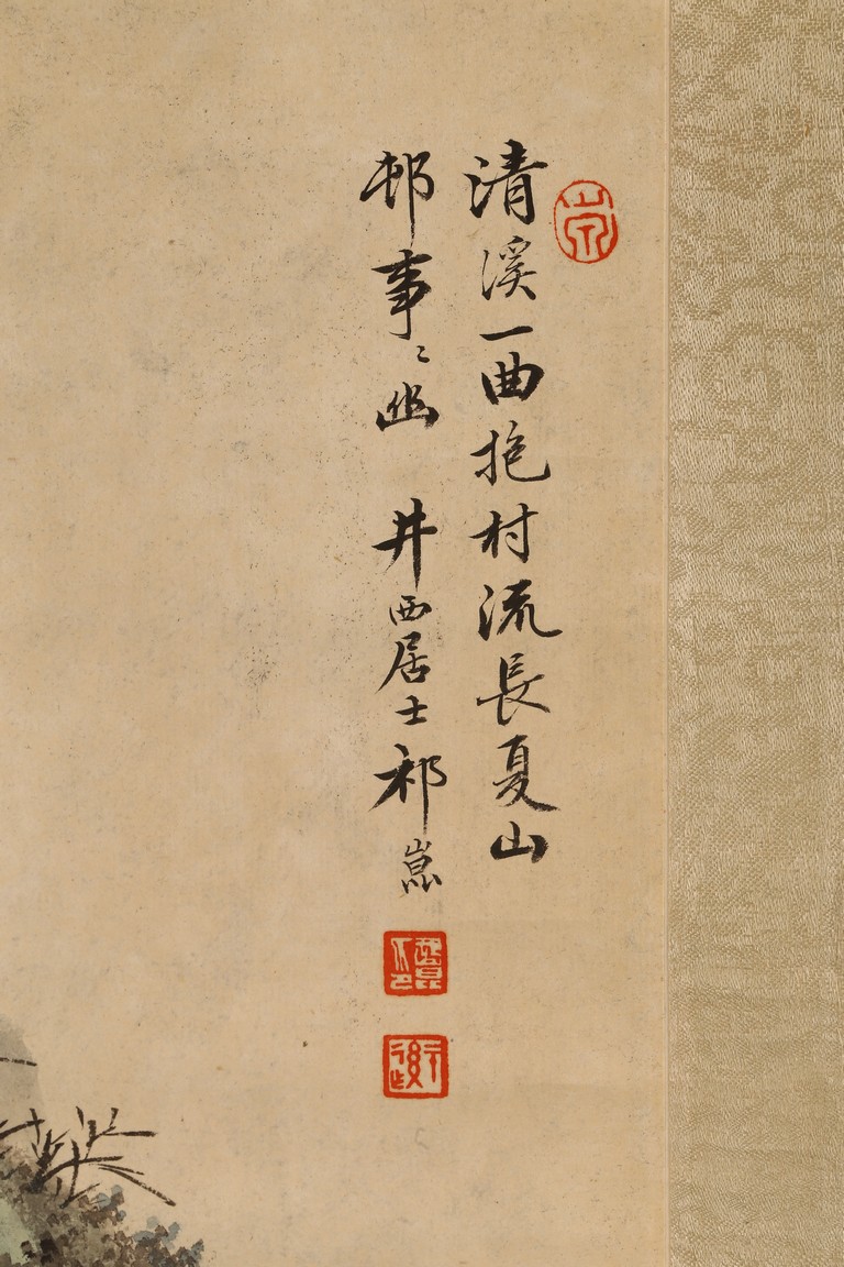 Ink and color on paper. Landscape. Four pieces set hanging scroll. Inscribed and signed Qi Kun with three seals of the artist each paint.