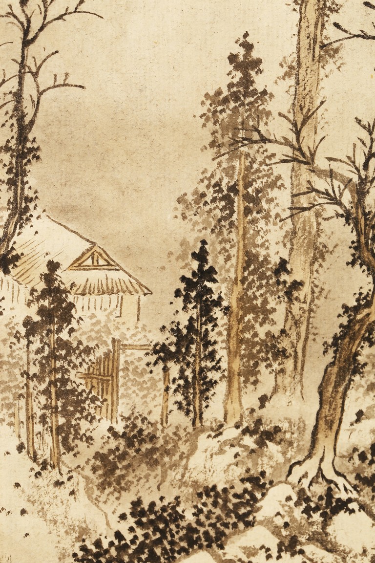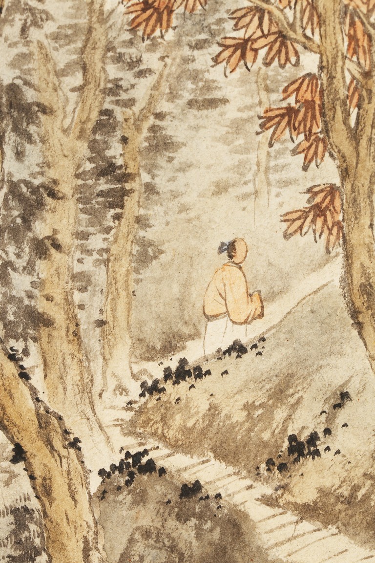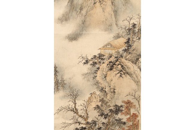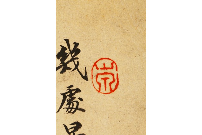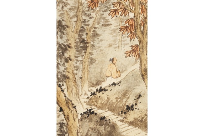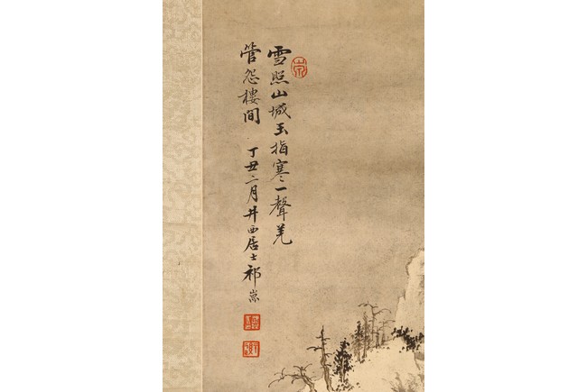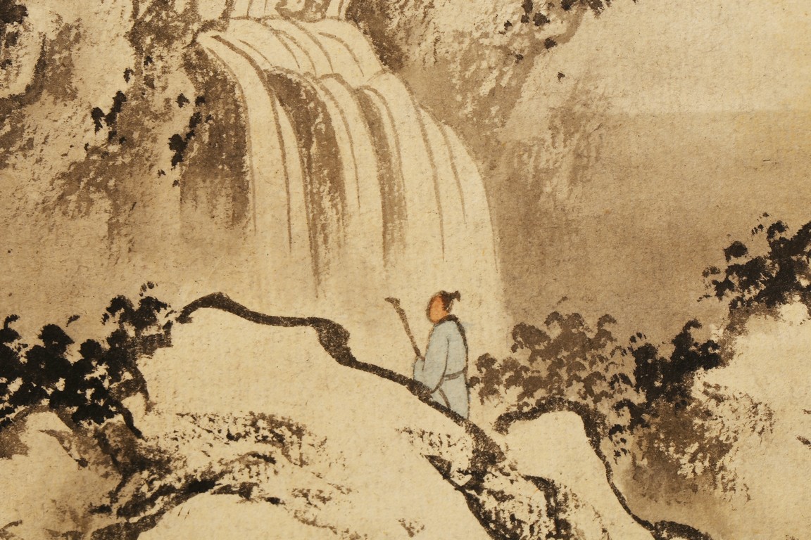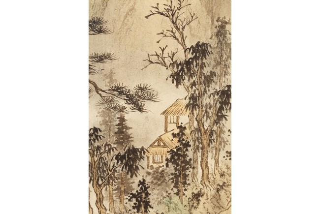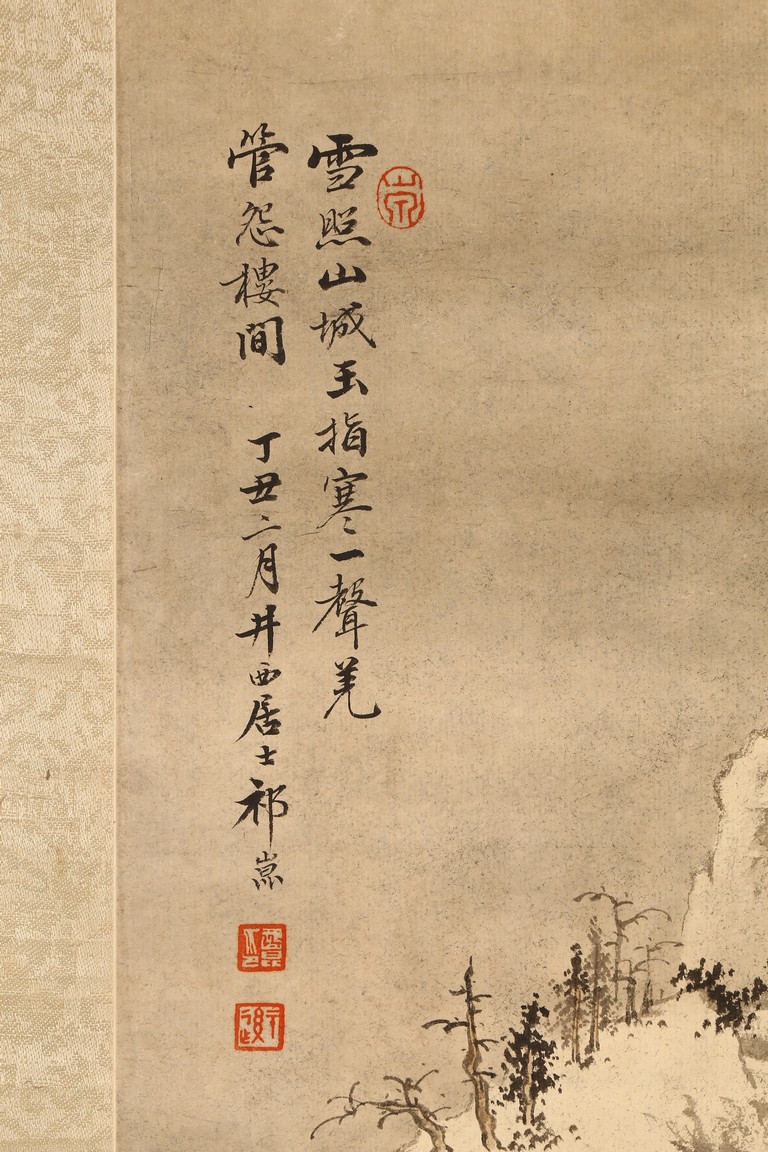 Ink and color on paper. Landscape. Four pieces set hanging scroll. Inscribed and signed Qi Kun with three seals of the artist each paint.