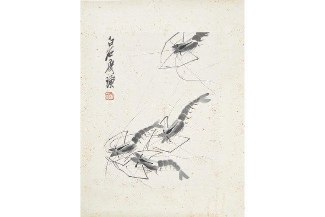 Ink on paper. Shrimps. Mounted on paper. Inscribed and signed Qi Baishi with seal of the artist.