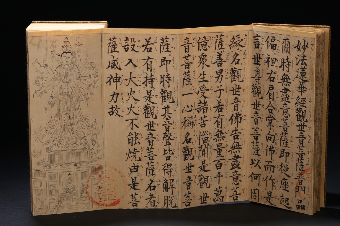 Ink on paper. The Buddhist scriptures and painting album. With six seal marks.