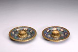 清中期 銅胎掐絲琺瑯蓮紋燭台座一對