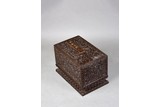 A ZITAN CARVED GEMS INLAID 'HUNTING SCENE' BOX