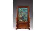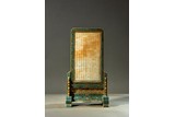 A CLOISONNE ENAMEL JADE INSCRIBED TABLE SCREEN