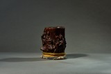 AN AGARWOOD CARVED 'FIGURES' BRUSHPOT