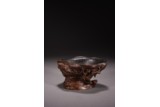 AN AGARWOOD CARVED 'PLUM BLOSSOM' BRUSHPOT