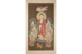 INK AND COLOR ON SILK PAINTING HANGING SCROLL