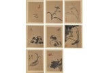 八大山人款 花鳥 冊頁八開 水墨紙本