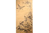 AN INK ON PAPER 'BIRDS' PAINTING HANGING SCROLL