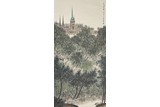 WU GUANZHONG: INK AND COLOR ON PAPER 'LANDSCAPE' PAINTING