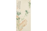 WU HUFAN: INK AND COLOR ON PAPER 'BAMBOO AND ROCK' PAINTING