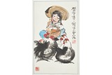 CHENG SHIFA: INK AND COLOR ON PAPER 'GIRL' PAINTING
