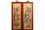 A PAIR OF COLOR AND INK ON SILK PAINTINGS WITH FRAME