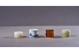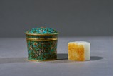 清乾隆 白玉帶皮扳指 配景泰藍盒