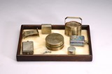 清晚期 銀製文房四寶一套七小件 及紅木雲石都丞盤