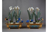 PAIR OF GILT BRONZE CLOISONNE AND HARDSTONE 'FLOWER' JARDINIERES