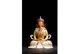 A GILT BRONZE FIGURE OF BHAISAJYAGURU BUDDHA