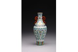 清道光 鬥彩纏枝花卉紋雙獸耳橄欖瓶