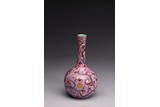 A FAMILLE ROSE PINK GROUND 'DRAGON' BOTTLE VASE