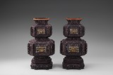 A PAIR OF OCTAGONAL ZITAN PAINTED LANTERNS