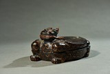 A PAINTED LACQUER 'MYTHICAL BEAST' INKSTONE