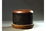 A CIRCULAR INK STONE WITH COVER AND STAND
