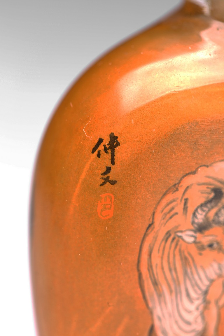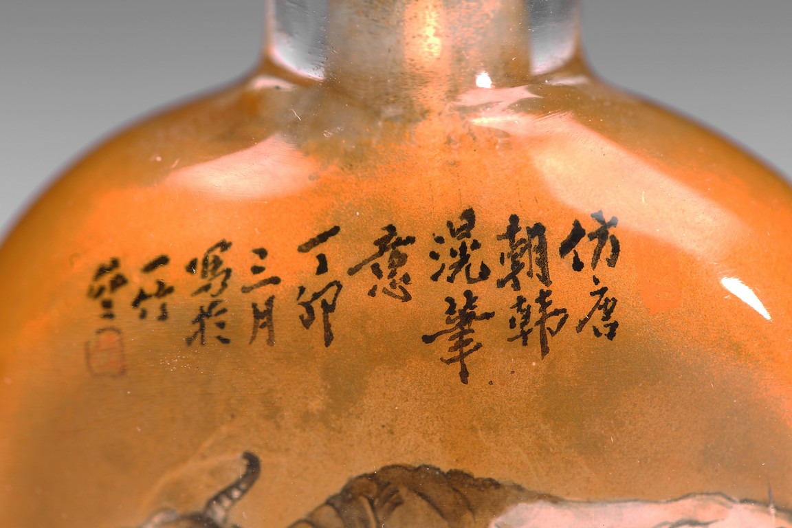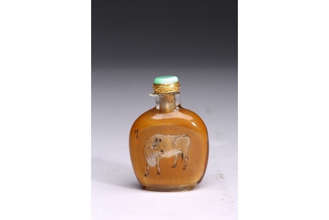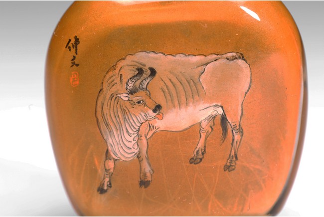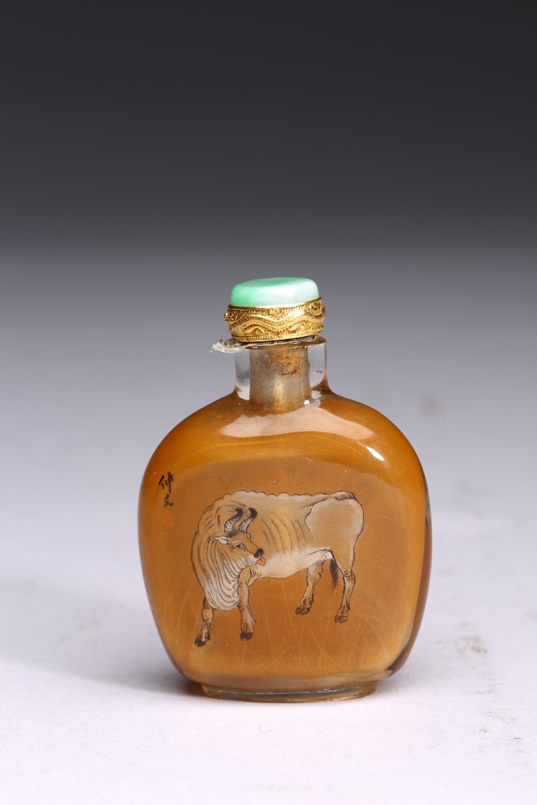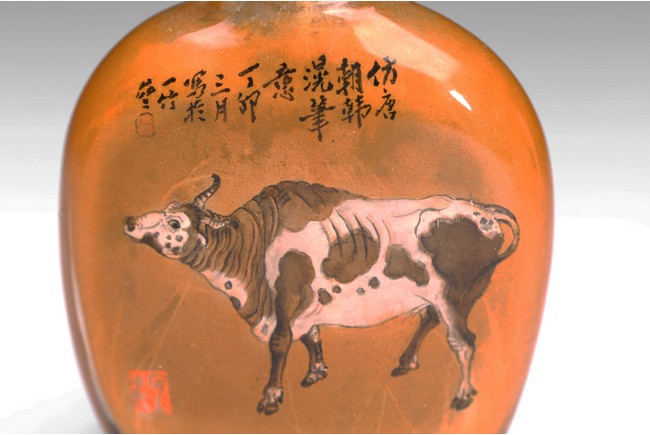 Late 19th/early 20th century.Inside-painted with cows to the front and reverse, with inscriptions and signed Zhong Wen.