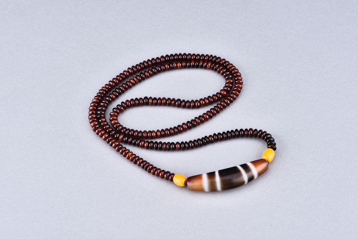 A TRI-COLOR CHUNG DZI BEAD NECKLACE    三色線珠項鏈